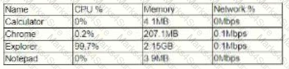 A user reports trouble using a corporate laptop. The laptop freezes and responds slowly when writing documents and the mouse pointer occasional disappears. The task list shows the following results [] Which of the following is MOST likely the issue?
