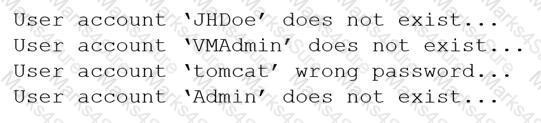 A company was compromised, and a security analyst discovered the attacker was able to get access to a service account. The following logs were discovered during the investigation: [] Which of the following MOST likely would have prevented the attacker from learning the service account name?