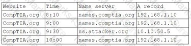 A security analyst reviews domain activity logs and notices the following: [] Which of the following is the best explanation for what the security analyst has discovered?