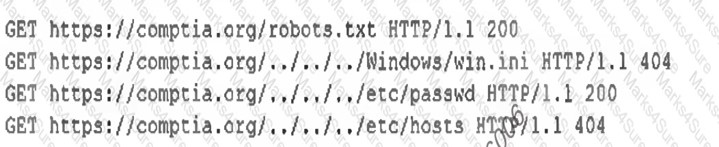 • D. GET https://comptia.org/./…/../etc/hosts HTTP/1.1 404