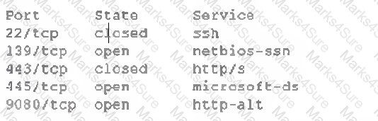 A system administrator performs a quick scan of an organization’s domain controller and finds the following: [] Which of the following vulnerabilities does this output represent?