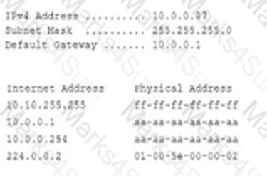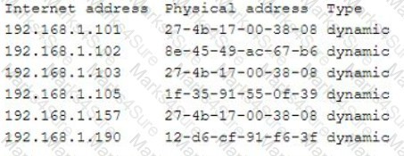 A security analyst is investigating network issues between a workstation and a company server. The workstation and server occasionally experience service disruptions, and employees are forced to reconnect to the server. In addition, some reports indicate sensitive information is being leaked from the server to the public. The workstation IP address is 192.168.1.103, and the server IP address is 192.168.1.101. The analyst runs arp -a On a separate workstation and obtains the following results: [] Which of the following is most likely occurring?
