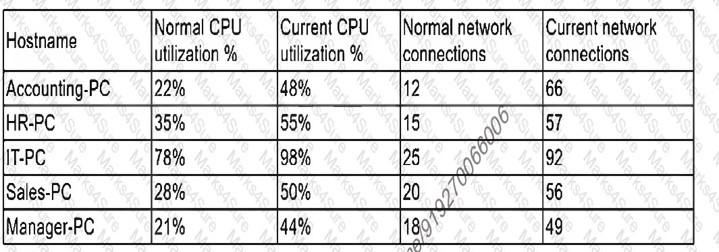 Several users have opened tickets with the help desk. The help desk has reassigned the tickets to a security analyst for further review. The security analyst reviews the following metrics: [] Which of the following is most likely the result of the security analyst’s review?