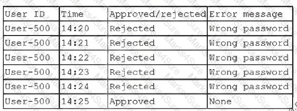 A security administrator received an alert for a user account with the following log activity:[]Which of the following best describes the trigger for the alert the administrator received?